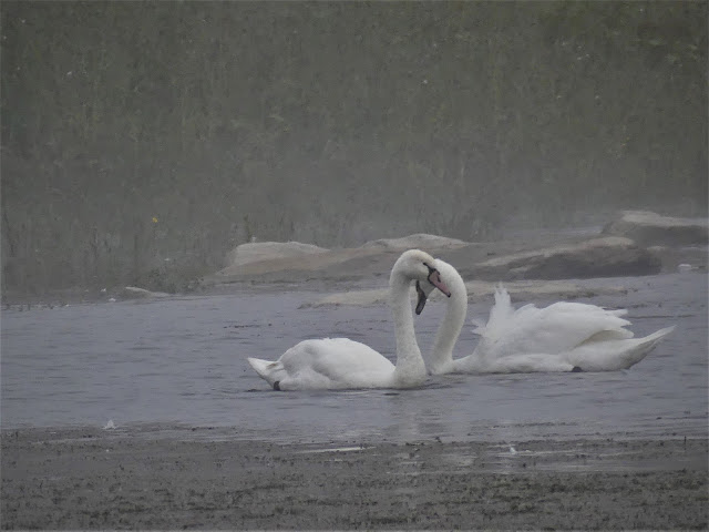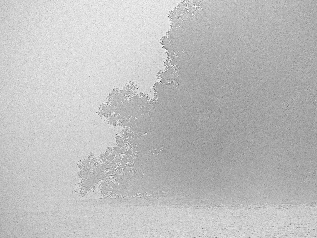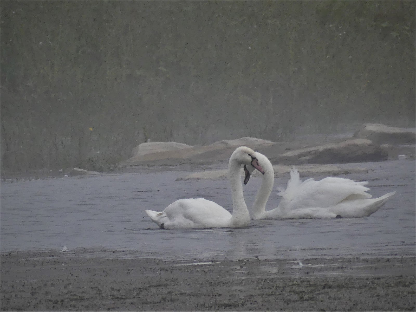 J’apprécie alors le réveil des cygnes et la pose de cette aigrette. Les arbres et la rive commencent à se dessiner au travers du brouillard. La brume se dissipera avec la chaleur montante des rayons du soleil….