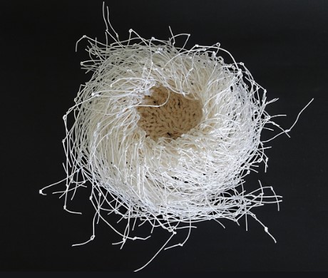 Annie aussi voulait que je vous parle d’une artiste japonaise. Nous avons vu son travail à plusieurs reprises entre autre à Angers lors de l’exposition Asie Europe. Kakuko ISHII travaille des sculptures avec des ficelles nouées :