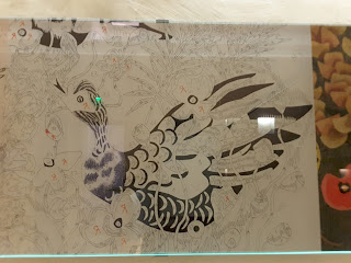 Dom Robert a créé des tapisseries « mille-fleurs » modernes. Je connaissais son travail sur les livres et autres supports. Une nouvelle fois, la curiosité m’a fait penser qu’il fallait voir : ce fut une révélation réellement !