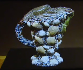 Mais, il faut savoir que la vaisselle figurée est encore plus ancienne. Lorsqu’on parle de ce type de vaisselle, on ne peut oublier les Rustiques Figulines de Bernard Palissy. Si vous ne les connaissez pas et que vous passiez soit par Ecouen, soit par Lens, arrêtez vous : vous allez les reconnaître tout de suite.