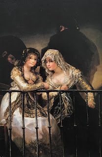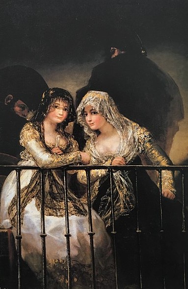 Revenons à notre tableau : ce n’est pas la première fois qu’une scène au balcon est représentée : Goya a peint les MAJAS au début du XIXème siècle. Manet l’a-t-il copié ? s’en est-il inspiré ? Je ne saurais répondre mais on retrouve l’espace du balcon moins cerné que chez Manet. Manet a fait un voyage en Esapgne et a vu ce tableau.