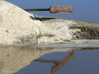 Le bleu de l’eauLe blanc du selLa nature dans toute sa simplicitéLa nature dans toute sa complexitéRythme lent et fragile qui finit dans l’œilletLà, si le vent s’en mêle, le sel devient fleur enfin de journéeMince croûte si délicate, si fragilePassant du rosé léger à sa cueillette au blanc le plus pur …Texte et photo de Jean YvesMerci Jean Yves pour ces perles blanches que je vois sur la photo et du calme que je lis ! -