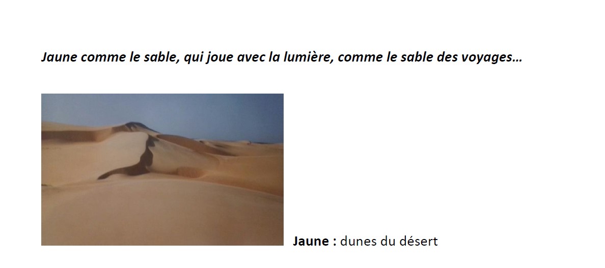 Jaune, le soleil et le sable, et le cri du désert. Jaune, tout ce qui éblouit, fracasse et reconstruit, jaune le tourbillon où le regard se consume et renaît d’un même battement de cils.