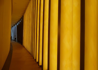 Un vrai bain de couleur entre jaune et or. Si on parle de bain de couleur, d’expérience sensorielle, on peut se rapprocher de l’artiste contemporain Dan FLAVIN qui pratique un art minimaliste. C’est une expérience là encore : allez voir si l’occasion se présente.