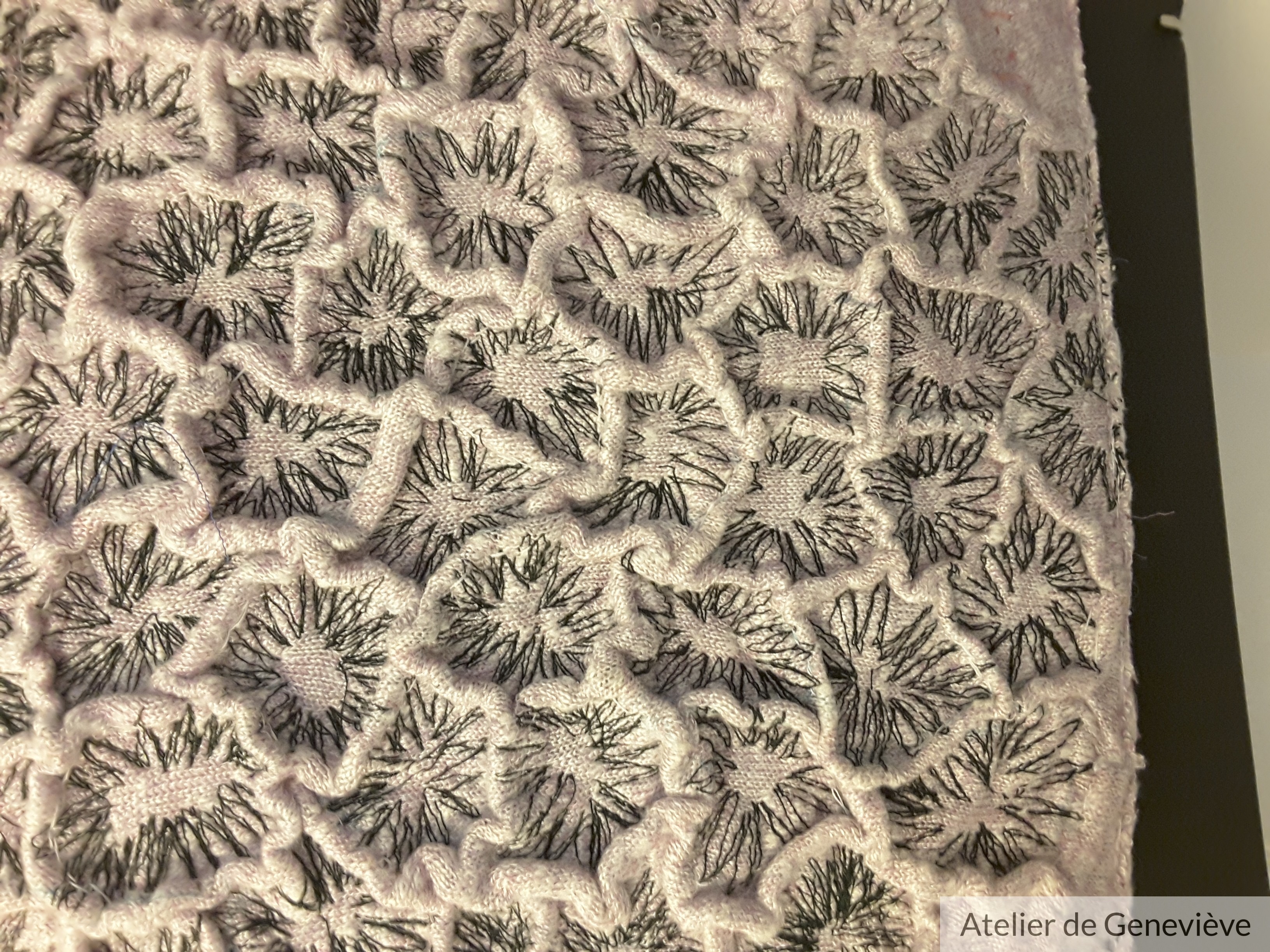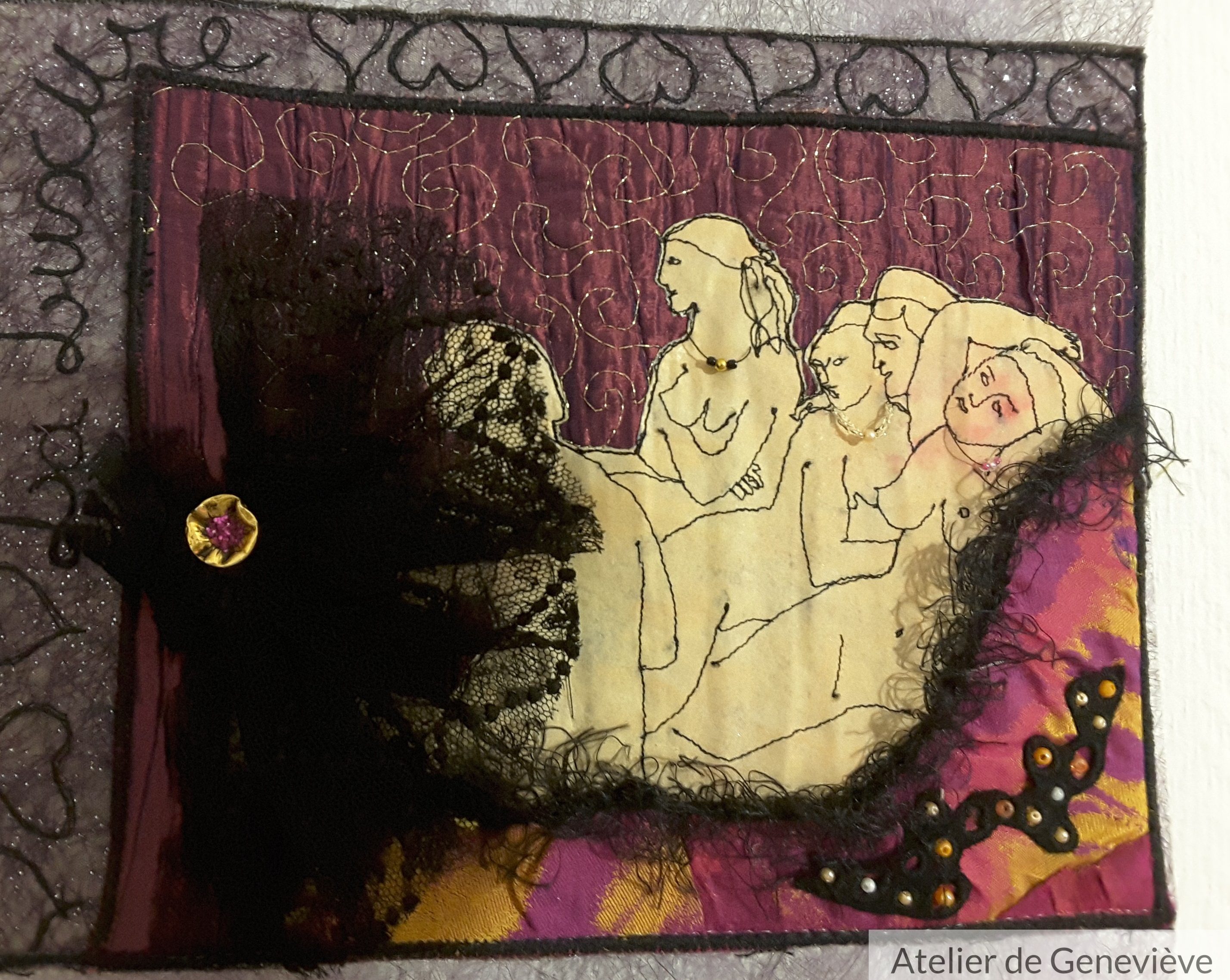 Je suis heureuse de vous présenter mes dernières broderies lors de ce week-end, accueillie par l’association L’Art à la Carte et son président Christian Roulleau. Quelques détails des pièces que je vous présenterai.