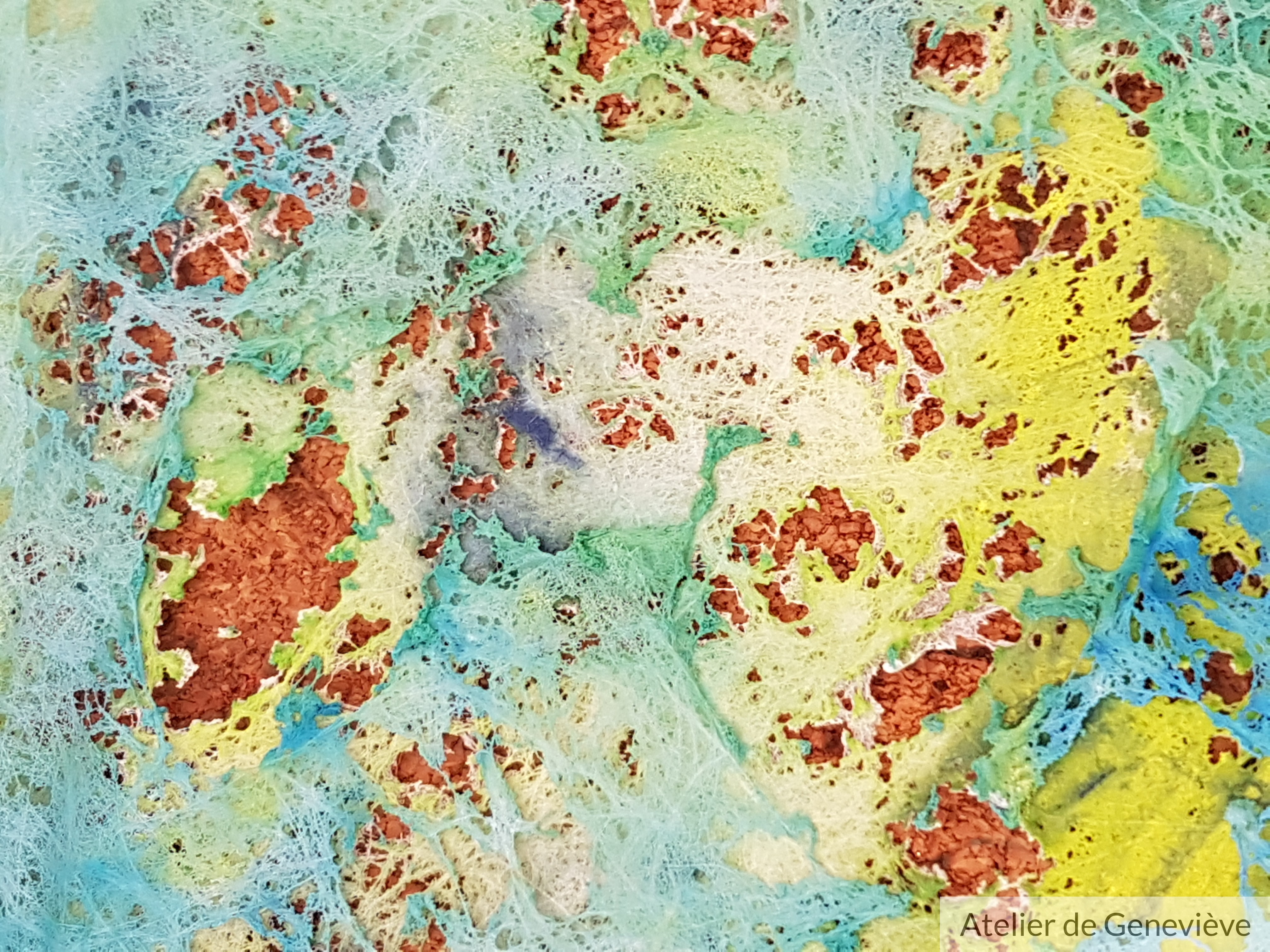 Nous avons travaillé in situ : l’une saisissant les couleurs de l’instant, l’autre tentant de les enregistrer, de les percevoir pour mieux les traduire ensuite sur ses textiles.