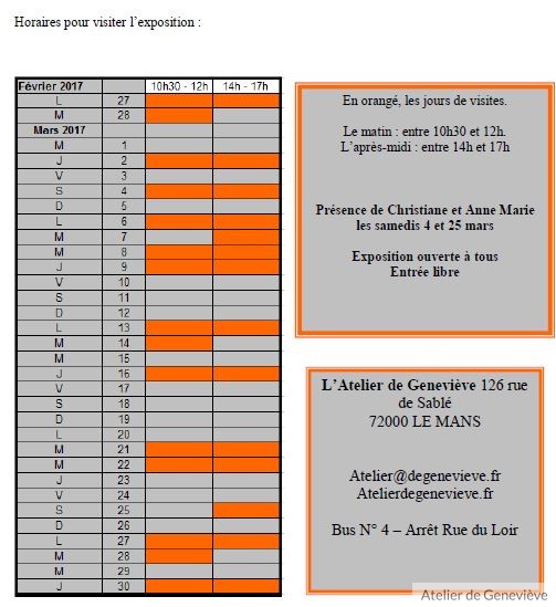 Exposition ouverte les après-midis de 14 heures à 18 heures 30: