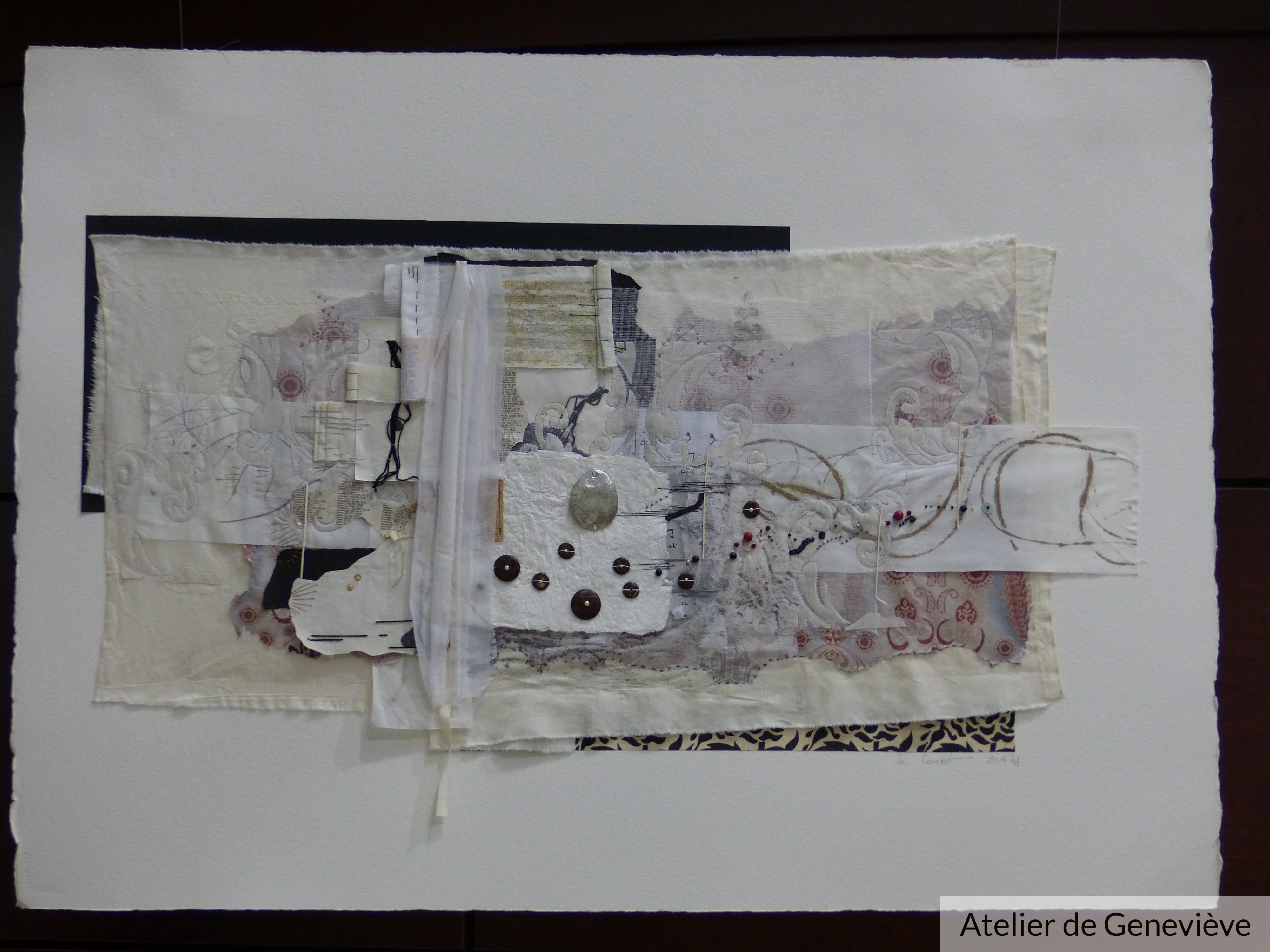 Je suis heureuse de vous présenter les dernières pièces créées cette année lors de l’exposition au Moulin Pousset du 17 juin au 17 juillet. Vous découvrirez mon travail autour de différents thèmes comme les vieux murs, les écorces, les collages… Broderies contemporaines, patines et teintures sont les outils qui m’ont été nécessaires pour ces réalisations.