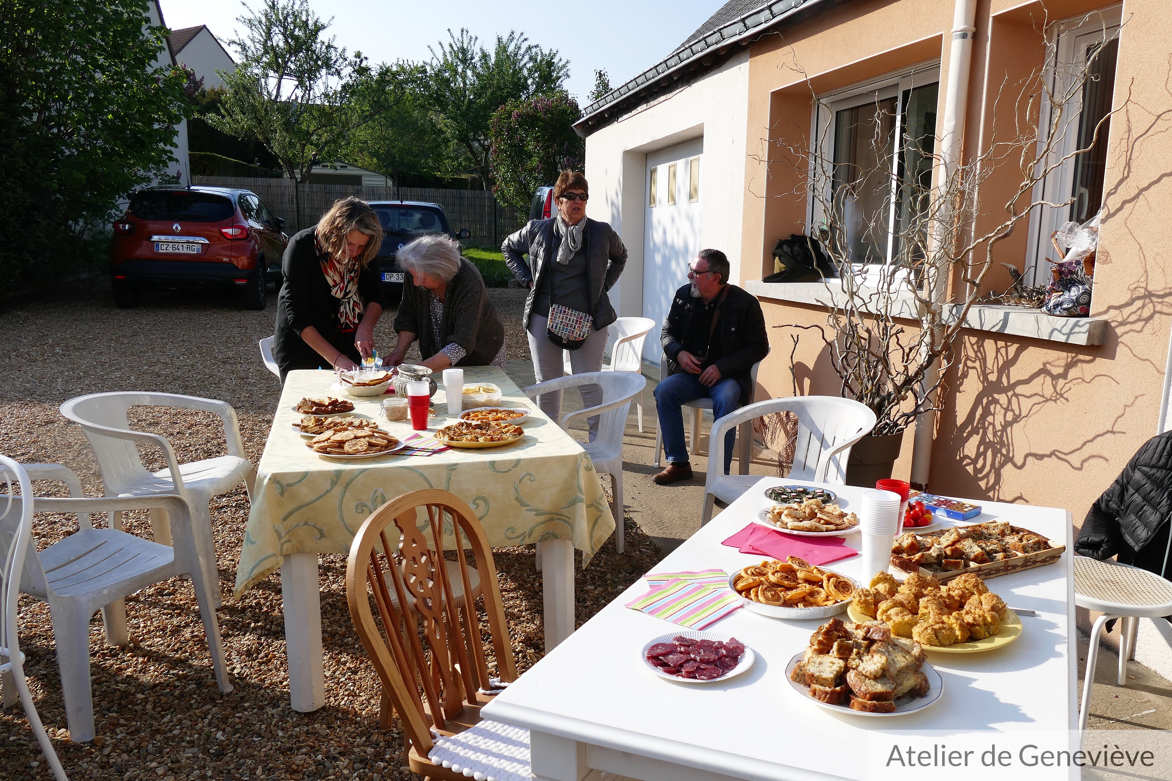 Ensuite, nous nous sommes tous retrouvés autour d’une symphonie de biscuits, cakes et autres gourmandises pour le plus grand bonheur de chacun. Ce moment de convivialité terminait l’exposition des travaux de l’atelier.