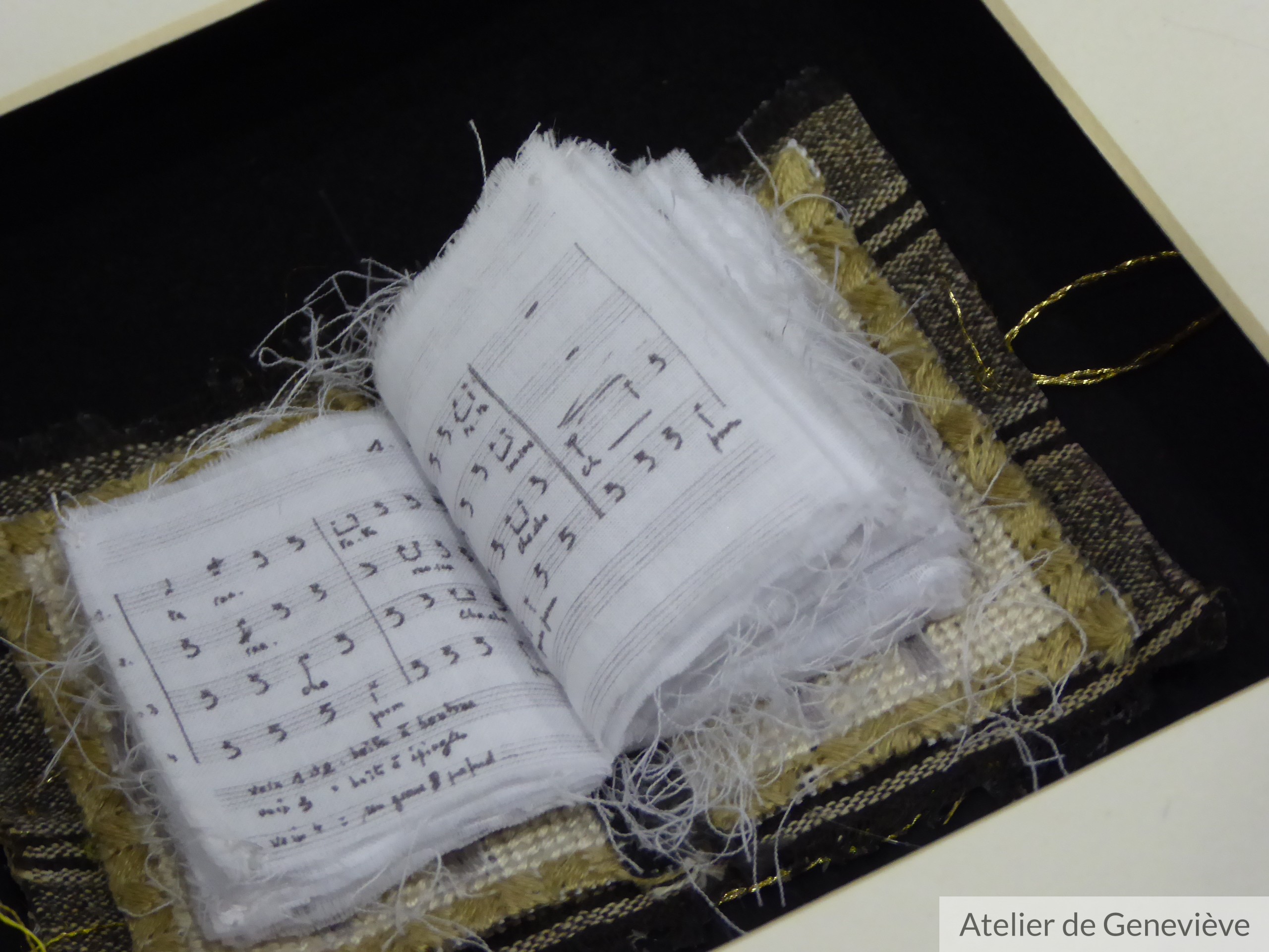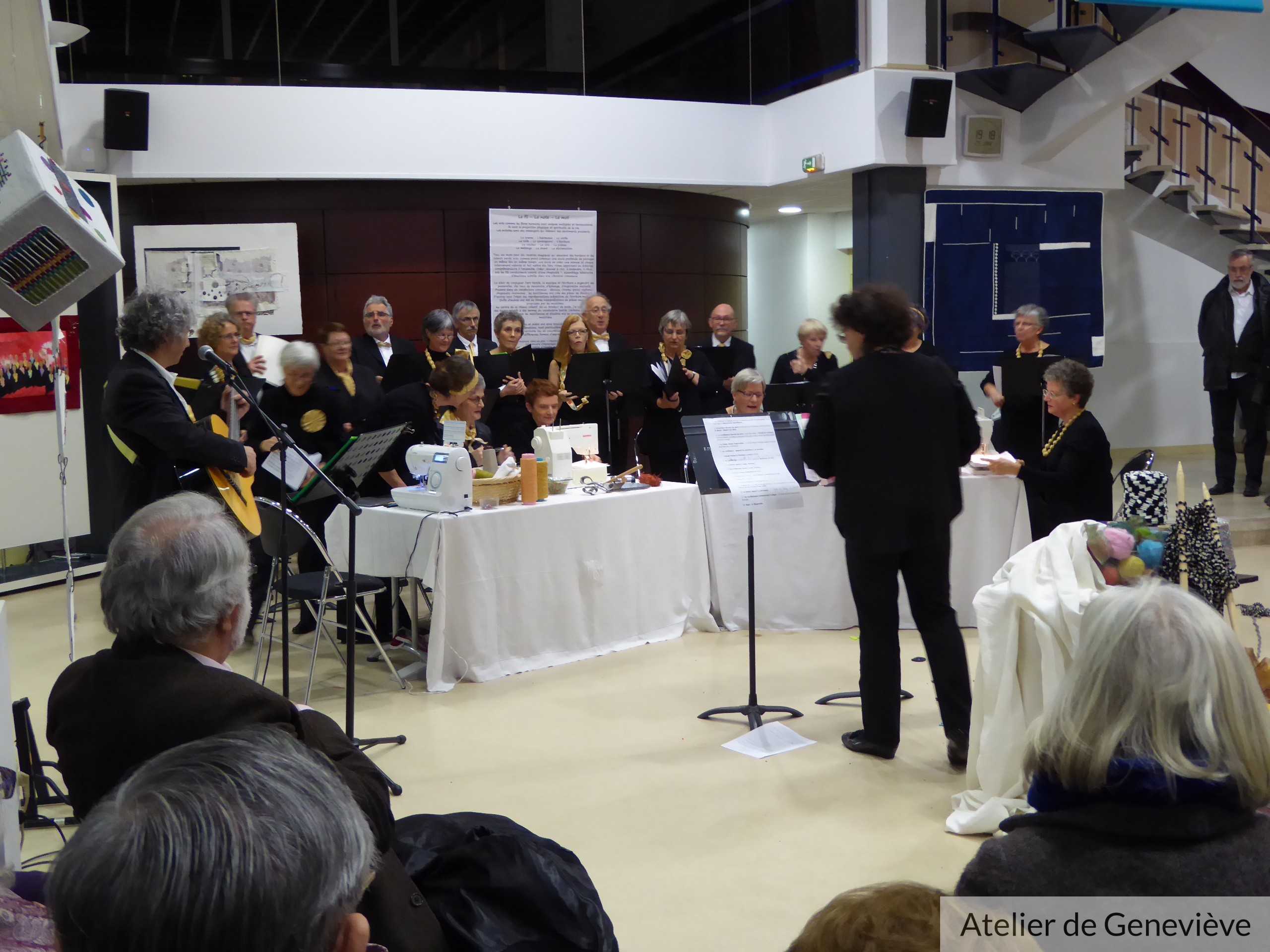 Travail collaboratif avec un choeur Une Voce dirigé par Christiane Godeau. Nous avons créée des pièces textiles à l’écoute des pièces interprétées par le choeur. Nous avons ensemble brodé autour des mots du poète Claude Dagué et, tous ensemble, nous avons interprété la musique et les compositions de Christiane Godeau lors du vernissage de l’exposition.