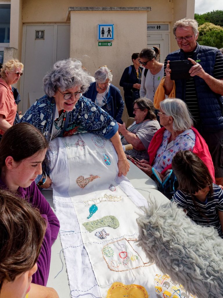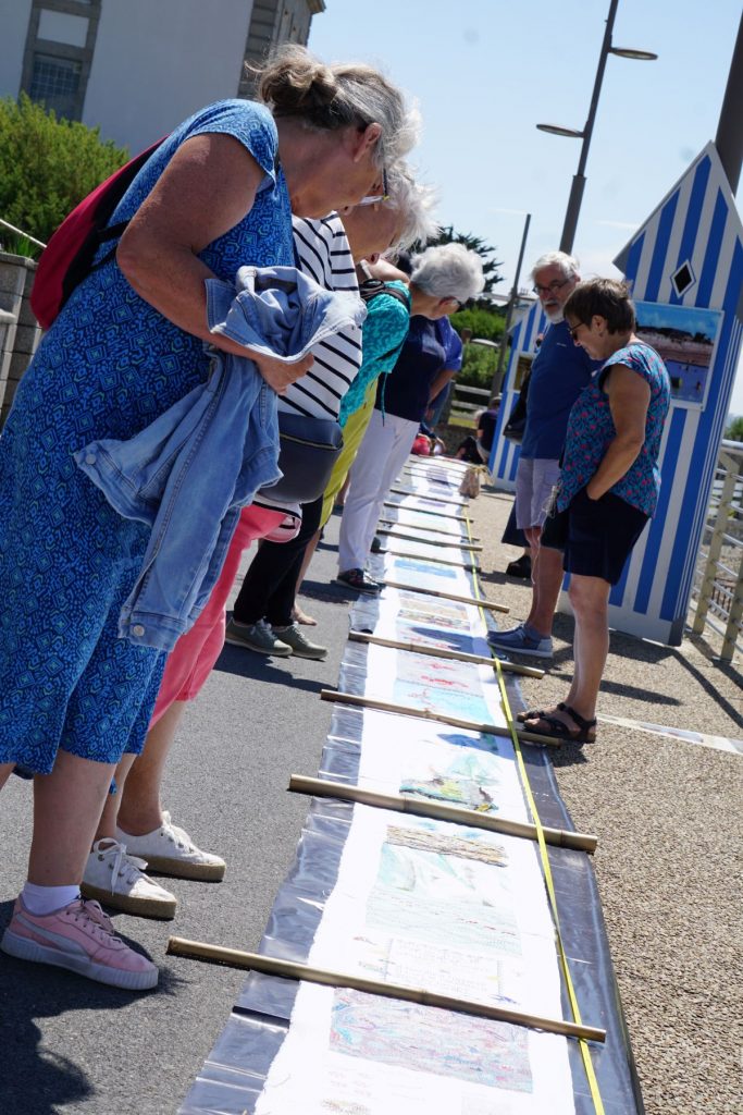 Le défi a été relevé et mesuré, certifié le 30 juillet sur la digue du soleil couchant à Saint Pair sur Mer, devant quelques centaines de spectateurs et de brodeuses. Notre Tapisserie fait presque 3 fois la longueur de celle de Bayeux puisque nous arrivons à 204 mètres.